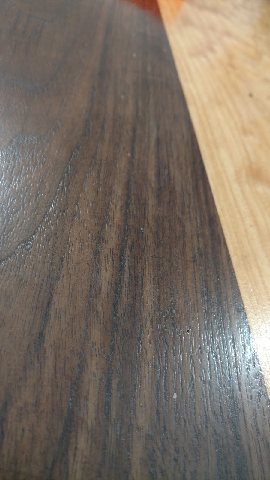Moving on... applied my usual few coats of Arm-R-Seal to the veneer (3 coats gloss 1 satin). I also lightly sanded the scratches and fingerprints (that came 6 hours after spraying...) in the paint and just applied some Arm-R-Seal to that as well and it's "good enough" for the back of the speaker that won't ever be seen.